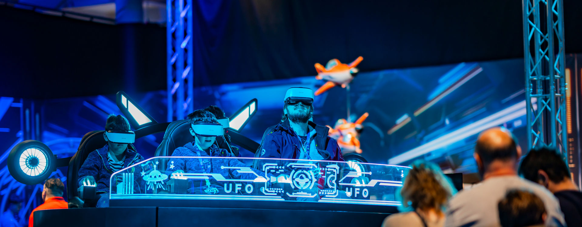 V našem SPACE Campu zažijete díky virtuální realitě více než 100 dobrodružství na vesmírných stanicích nebo průletů mezihvězdným prostorem.