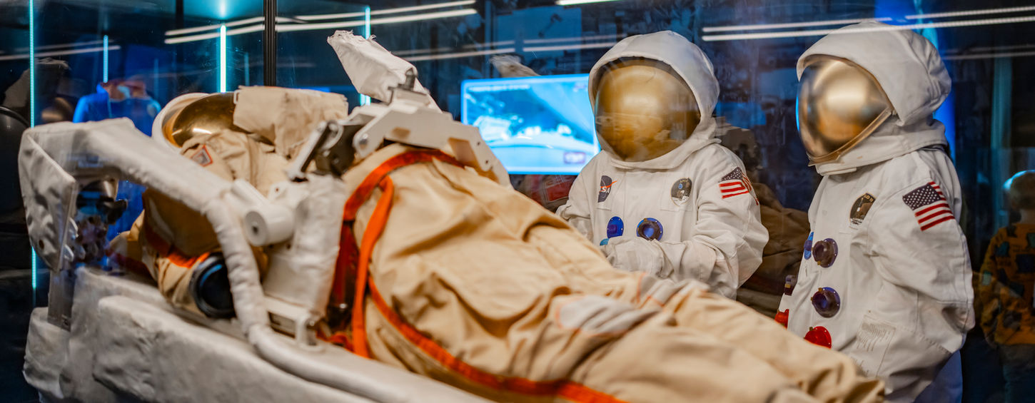 Original, not only American and Soviet artefacts, such as spacesuits, rocket engines, spaceships, prototypes of lunar vehicles or huge walk-through models of the shuttle and orbital stations, are complemented by projections that take you directly to spaceships or straight into space. Of course, there is also an audio guide.