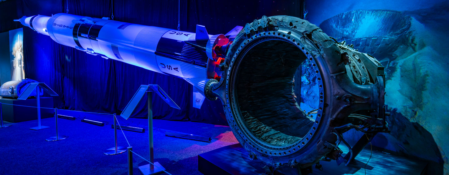 an original Saturn V launch vehicle engine nozzle recovered from the bottom of the Atlantic Ocean